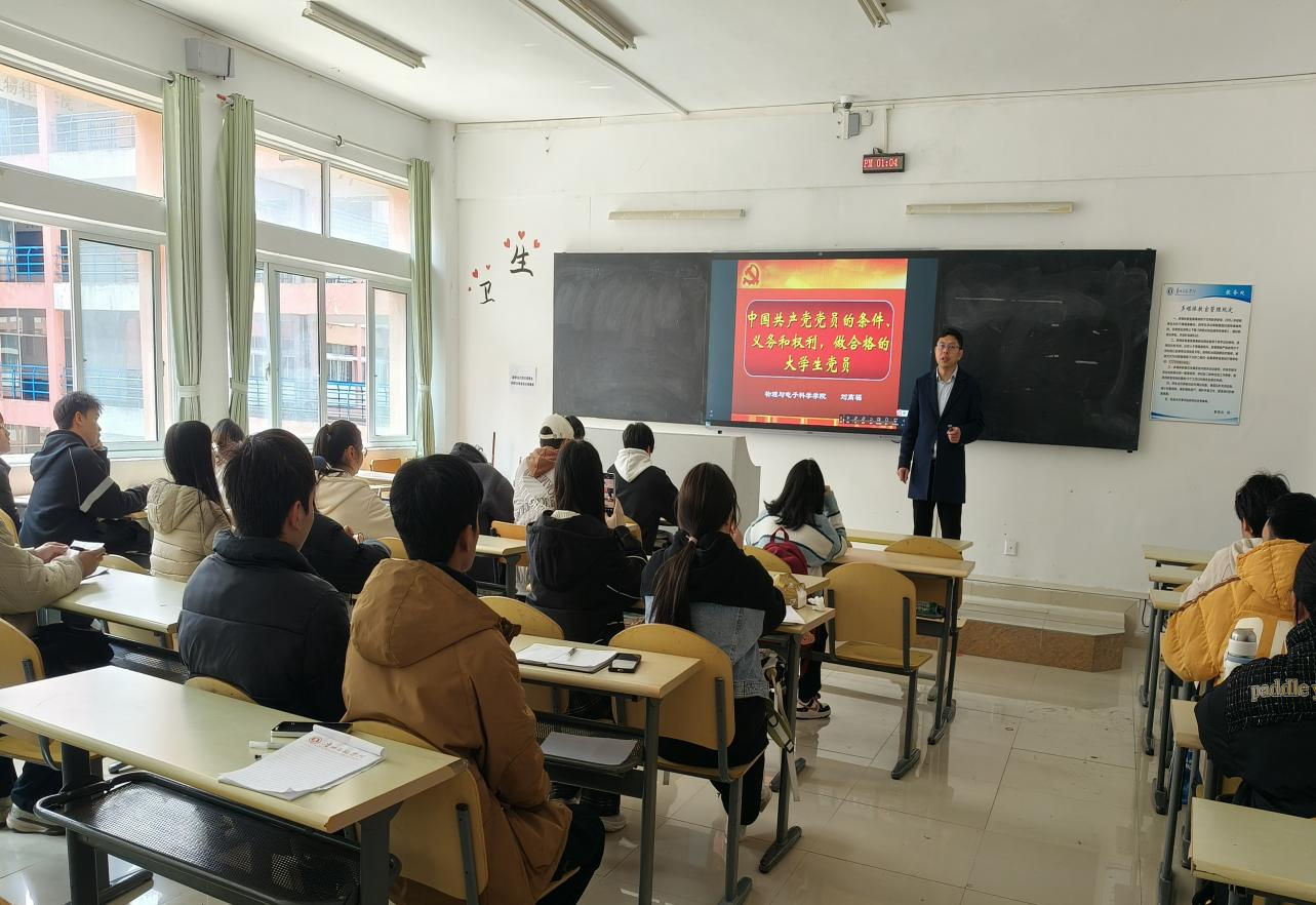 为使学院入党积极分子对中国共产党党员的条件、义务和权利有进一步的了解,3月19日,a片漫画 第59期入党积极分子培训班第二次党课在宁静楼429教室举行。本次党课以“中国共产党党员的条件、义务和权利,做合格的大学生党员”为主题,由学院院长刘高福主讲,物电学院全体入党积极分子参加培训。 党课开始,刘高福首先介绍了《中国共产党章程》,《党章》集中体现了党的性质和宗旨、党的理论和路线方针政策,规定了党的重要制度和体制机制,是全党必须共同遵守的根本行为规范。同时,刘高福也对《党章》部分内容进行了详细解读,让入党积极分子们深刻认识《党章》的核心内容及其意义。接着,他进一步讲解了中国共产党党员的条件、义务和权利,他强调,在全面建设社会主义现代化国家的新征程中,党员必须将条件、权利和义务统一于“为中国人民谋幸福、为中华民族谋复兴”的初心使命,脚踏实地,做好每件事,用实际行动践行入党誓言,在民族复兴伟业中发挥先锋模范作用。 本次党课,让入党积极分子们进一步认识到党员的权利义务是党员言论行为准则不可缺少的部分,把党员的义务作为一面镜子,在学习、生活中对照检查自己的言行,坚持持续改进,争取早日加入中国共产党。 文/图 钟明君 朱启月 初审:雷仕娜 复审:蔡晶 终审:刘高福
