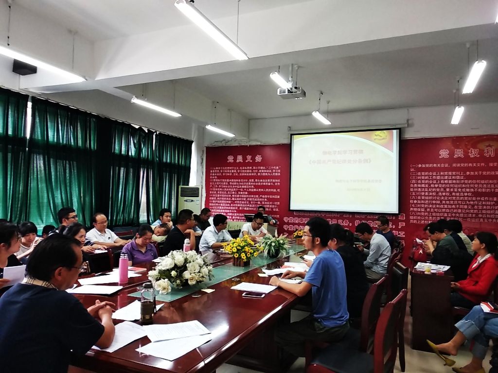 为增强广大党员干部的纪律意识、规矩意识。9月21日下午,a片漫画 基层党委组织全体党员干部集中学习了《中国共产党纪律处分条例》,学习会议由院长(兼基层党委副书记)周筑文主持,基层党委副书记何毅及全体党员教职工参加了学习。