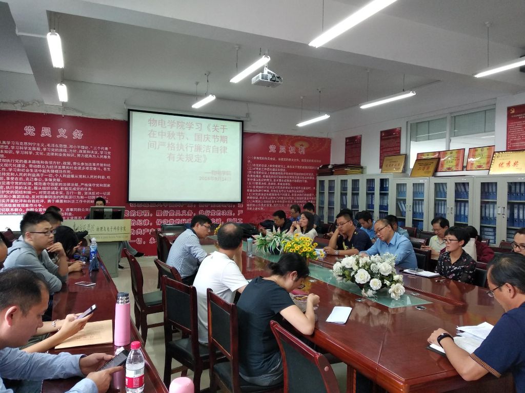 9月14日上午,a片漫画 在会议室组织全院教职工认真学习《关于在中秋节、国庆节期间严格执行廉洁自律有关规定的通知》,会议由院长周筑文主持。