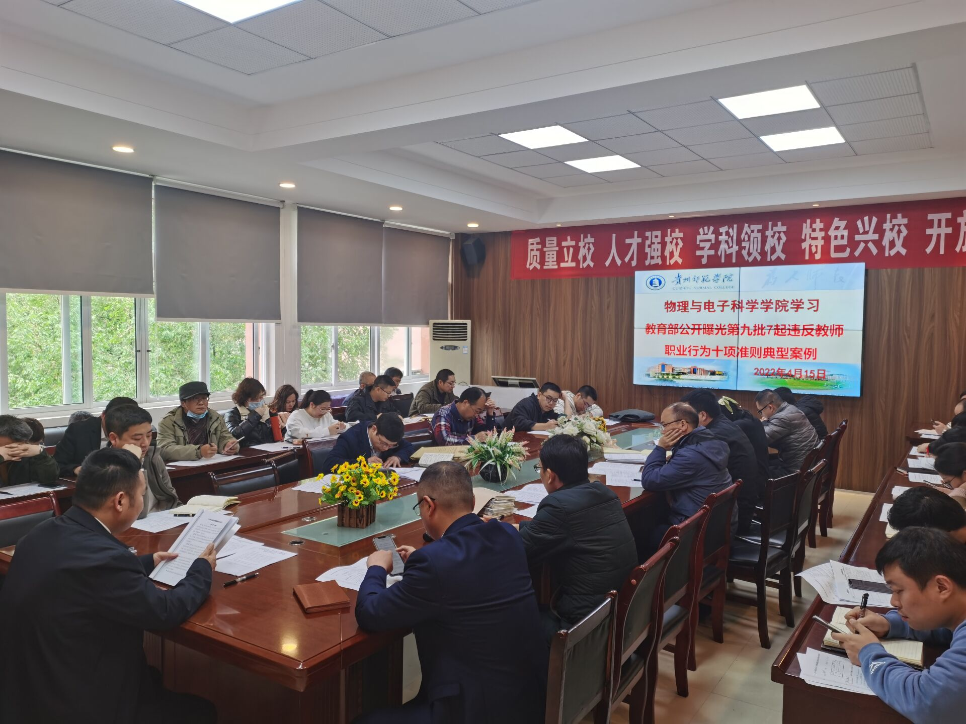 为进一步加强教师思想政治和师德师风建设,严明底线红线,提升教师形象,建立具有良好师德修养的教师队伍,4月18日,a片漫画 召开了传达学习《教育部公开曝光7起违反教师职业行为十项准则典型案例》的专题会议。会议由院党委书记熊德永主持,全院教师参加。 会上,熊德永宣读了《第九批7起违反教师职业行为十项准则典型案例》,从法律、教师职业道德操守等层面向大家深入分析了性骚扰学生、廉洁纪律、有偿补课、资格证造假、体罚学生、发表错误言论等问题的严重性,强调学校要进一步强化教师师德师风建设,持之以恒抓好警示教育,做到警钟长鸣,维护好教师队伍的形象。教师要成为学生的引路人,教育者先要受教育,教师自身要有理想信念、道德情操、扎实学识、仁爱之心。 熊德永强调,十项准则作为新教师入职培训和在职教师继续教育的必修内容,老师们要积极研读,切实增强遵守教师职业行为十项准则的思想自觉和行动自觉,做到人人应知应做、必知必做,真正把教书育人和自我修养结合起来,时刻自重、自省、自警、自励,自觉做以德立身、以德立学、以德施教、以德育德的楷模,维护教师职业形象,提振师道尊严。