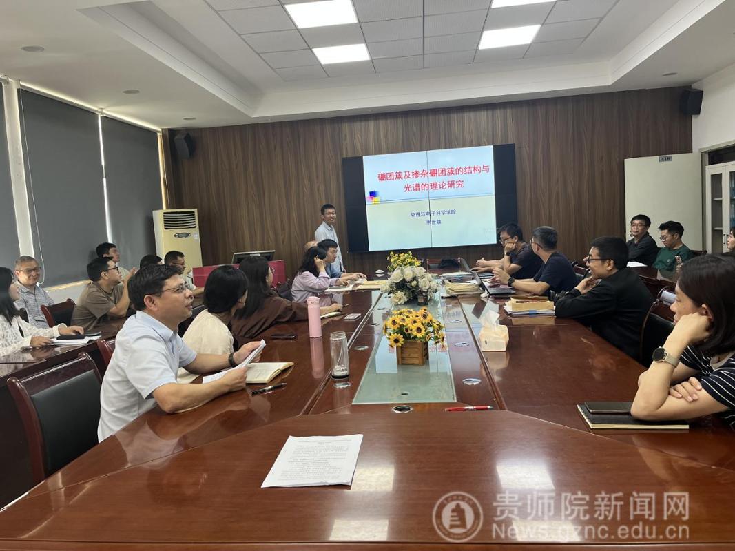 在宁静楼419会议室举办系列学术讲座。活动旨在填补教学与科研断层,激发创新灵感,助力学科发展。学院全体教职工及部分感兴趣学生到场聆听,讲座由学院院长刘高福教授主持。本次系列学术讲座由物电学院教授李世雄、副教授冀慎统、陈雨以及高级实验师高成贵主讲。 首先,冀慎统以“数值模拟 BEC 中孤子和干涉现象”为题展开报告。详细讲解了玻色-爱因斯坦凝聚体中的干涉、双组分玻色-爱因斯坦凝聚体中的环状暗孤子等内容,为量子信息处理提供新路径。 随后,李世雄分享了“硼团簇及掺杂硼团簇的结构与光谱的理论研究”。他系统阐述了基于密度泛函理论,对Bn0/−(n=38-40)的电子结构与光谱性质进行深入的比较分析,并基于密度泛函理论研究了硼富勒烯B40的外电场效应,分析外电场下硼富勒烯B40的电子结构与光谱性质的变化,通过理论建模揭示掺杂元素对团簇光谱特性的调控机制,为新型功能材料设计提供理论支撑。 陈雨以“量子 Fisher 信息与精密测量”为题,阐释相位噪声激光下量子Fisher信息的动力学特性研究,开放量子系统下基于量子弱测量和前后翻转的量子Fisher信息保护。 最后,高成贵聚焦“介电超构表面谐振腔共振模式与激子的强耦合研究”。主要阐述了ETD/MTD共振模式与激子的强耦合特性研究,共振波长稳定的ETD-QBIC共振模式与激子的强耦合特性研究,并展示了最新的研究成果。 讲座结束后,参会师生针对讲座内容进行提问和讨论,现场学术研讨氛围热烈。会议最后,刘高福强调本次系列讲座涵盖理论模拟与实验研究,为师生搭建了跨方向学术交流平台。参会师生纷纷表示,讲座内容兼具深度与广度,不仅增进了对前沿领域的理解,更激发了交叉研究的创新灵感,将推动学院科研工作进一步发展。 文/图:岳天天 一审:岳天天 二审:蔡晶 终审:刘高福