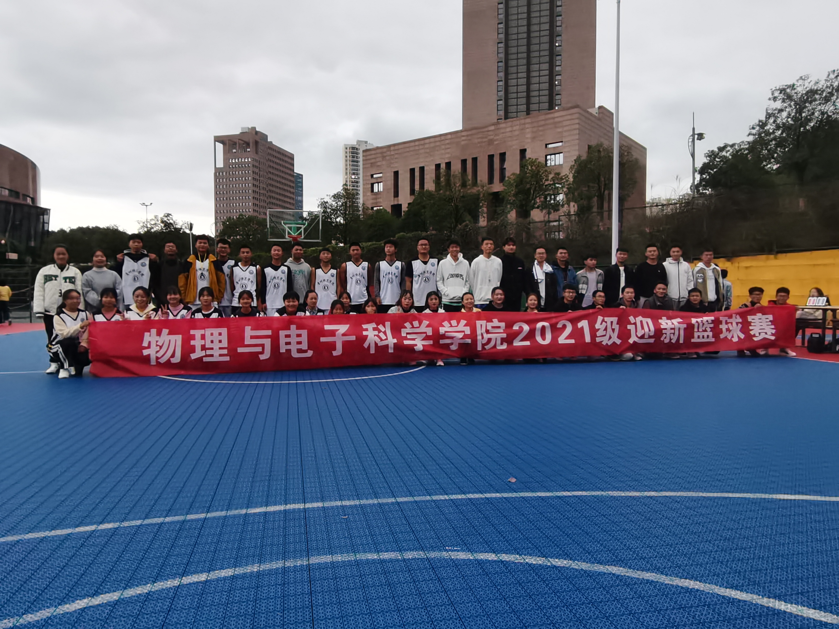 为丰富大学生校园文化生活,加强体育锻炼,推动21级新生融入物电学院大家庭,10月22日,学院在学校篮球场举行了2021年物电学院“迎新杯”篮球比赛开幕式。院学生会主席团成员侯雷波、学生会体育部全体成员以及全体篮球运动员代表参加了开幕式。 活动开始,侯雷波首先为本次篮球赛致开幕词,表达了对此次篮球赛的祝福与期待,并鼓励同学们积极参加体育活动、加强体育锻炼,锤炼意志品格,期望所有参赛者赛出水平、赛出风格、赛出和谐。 随后,裁判代表及运动员代表依次上台进行宣誓仪式。庄严的宣誓声表明了他们将会恪尽职守,坚持“公平、公正、公开”的比赛原则。 最后,激动人心的迎新篮球赛正式开始,篮球场上运动员们激情澎湃,挥洒汗水,充分展现了物电学子团结、和谐、勇于拼搏的体育精神。至此,“迎新杯”篮球赛开幕式圆满结束 通过本次比赛,提高了广大学生的运动积极性,加强了集体凝聚力。相信各班级队伍能在接下来的比赛中尽情挥洒汗水、展示球技、收获友谊。