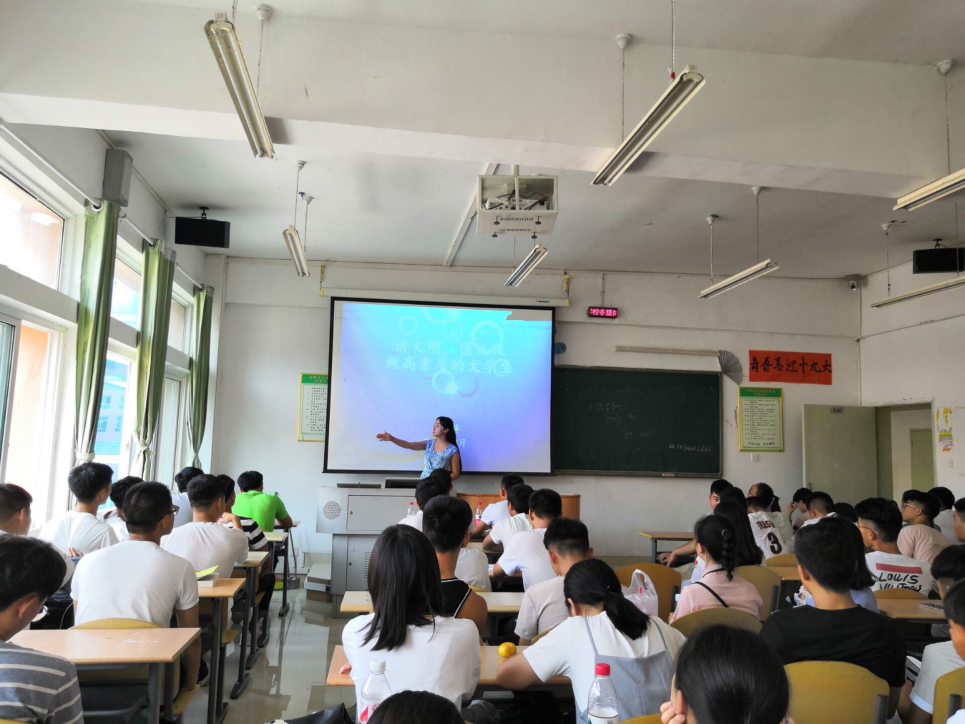 9月4日下午,a片漫画 在致远楼516教室为18级新生开展了文明礼仪教育,由楚亚萍老师主讲。