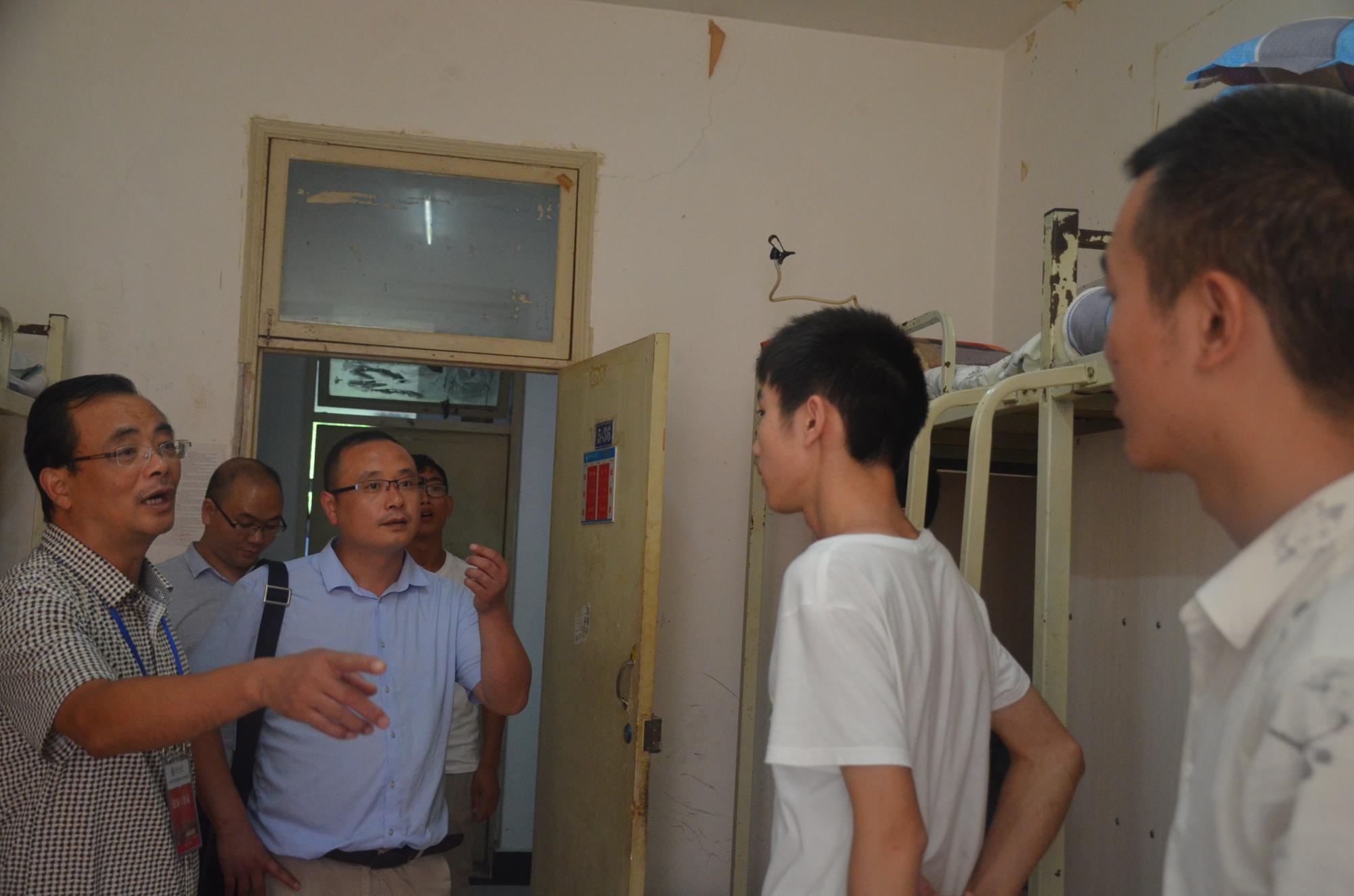 为了解新生入住情况,同时使他们能安心入住。8月29日下午,物电学院党委书记熊德永、院长周筑文、党委副书记何毅、副院长陈德良、辅导员张扬、刘家兴等老师来到新生寝室走访。