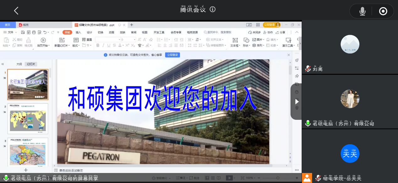 为进一步做好物电学院2023届非师范生的实习工作,给予同学们更多的实习锻炼平台。6月24日晚上,a片漫画邀请到苏州名硕电脑公司的吴蓉芳经理为同学们进行企业宣讲。本次会议由学院教学科研管理科科长岳天天主持,物电学院2019级电子专业、光电专业全体同学参加了此次宣讲会。 会上,苏州名硕电脑公司的吴蓉芳对公司的基本情况作了详细的介绍,重点为同学们介绍了工作内容、工作环境以及生活情况,同学们通过此次会议了解到苏州科技园、公司人才培育、员工关怀平台、厂区生活娱乐等方面的基本情况。会议的结尾同学们积极地提问,吴经理就同学们的问题一一进行答复。 此次宣讲会的开展,进一步拓宽了专业实习范围,同学们可以根据自己的具体情况做出合适的选择,不管同学们做怎样的选择,只要认真地参与几个月的实习锻炼,一定能提升自己的专业能力,为今后的职业生涯打下良好的基础。