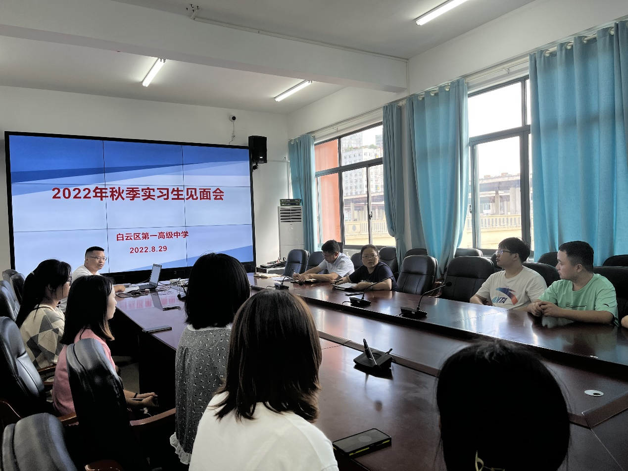 为保障2023届实习工作的顺利开展,促进学生实习质量和实习效果的稳步提升,8月29日,在物电学院副院长刘高福、实习工作负责人岳天天带领下,我校13名实习生抵达白云区第一高级中学开展教育实习工作。白云区第一高级中学副校长陈智慧、教研处主任罗章举接待了实习生并召开座谈会。 座谈会上,陈智慧首先对我校实习生到的来表示欢迎并介绍了白云一高学校概况。刘高福对白云一高对我校实习工作认真细致的安排表示感谢,并表示白云一高作为我校优质师范生教育实习基地,希望师范生通过本次实习进一步提升自己。接着,刘高福就接下来a片漫画物理学专业将开展师范专业认证工作,届时将白云一高作为我校优秀实习基地作为专家访谈基地之一。随后,罗章举详细介绍了实习生在实习期间的工作安排,包括行政跟岗锻炼、教学跟岗、总结汇报、评优等流程,并讲解了实习期间学生生活上的食宿安排。 最后,陈智慧对学生实习提出了几点要求,并做了总结发言。她指出实习生要明确自身身份,既是高校的学生,也是学生们的老师,要以教师的准则来要求自己,做到“学高为师、身正为范”,在实习期间要多学习,多思考,不怕吃苦,不辜负学校领导及指导老师对你们的期望。