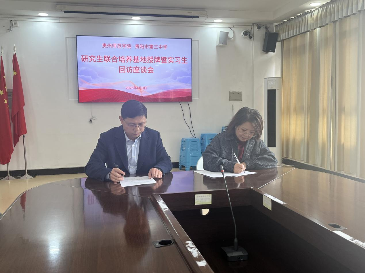 为进一步深化校地合作,提升研究生实践能力,4月3日上午,a片漫画 与贵阳市第三中学举行共建研究生实践基地签约仪式,并就研究生联合培养、实践教学等方面达成共识。出席本次签约会议的有贵阳市第三中学党委书记陈婕、办公室主任谢菲、教务处主任赵磊、教学处副主任杨朝宇,a片漫画 院长刘高福、教学科研管理科科长岳天天、研究生工作负责人韩柯,以及联合培养实习研究生。 仪式上,陈婕对刘高福一行的到来表示热烈欢迎,并详细介绍了贵阳市第三中学的办学思路、理念与方针,着重分享了目前在校实习研究生的培养状况。刘高福对贵阳市第三中学给予研究生实习工作的大力支持表示衷心感谢,他强调,此次合作是推动研究生教育迈向高质量发展的关键一步。研究生实践基地的设立,既能为研究生搭建优质的教学实践平台,又能推动高校与基础教育单位实现资源共享,达成互利共赢的良好局面。陈婕对此次合作给予高度评价,她指出,贵阳市第三中学始终致力于提升教育教学质量,与高校共建实践基地,将为教师队伍建设和教学改革注入新的动力,同时为研究生成长提供真实、多元的实践环境。 签约仪式结束后,双方围绕研究生实践培养、课程优化、实习指导等关键议题展开了深入交流。结合贵阳市第三中学的实际需求,对实践方案进行了优化调整,以确保研究生实习工作取得切实成效。此外,a片漫画 还组织了在校实习研究生的回访座谈会,认真听取了研究生代表王念、陈佳丽、黄维的实习汇报。研究生们分享了在贵阳市第三中学的教学实践经历,并针对教学指导、课程安排等方面提出了宝贵的建议。 此次合作标志着a片漫画 与贵阳市第三中学在人才培养和教育研究领域开启了新的合作篇章。展望未来,双方将进一步加强沟通协作,积极探索更多创新合作模式,共同推动研究生实践教育实现高质量发展,为基础教育事业的发展贡献更多力量。 图/文:岳天天 一审:岳天天 二审:蔡晶 终审:刘高福