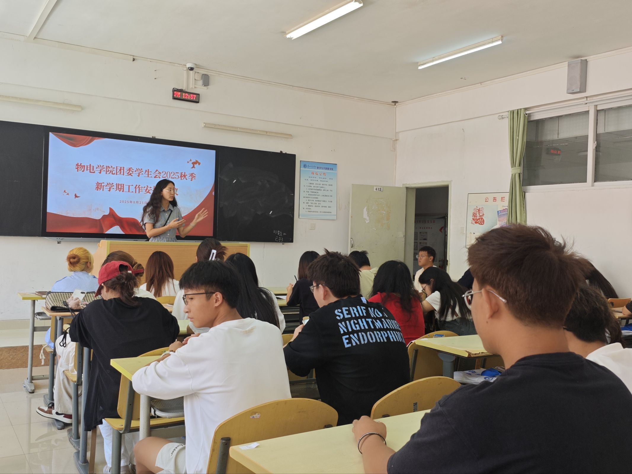 为总结上学期团委学生会各部门工作情况,部署新学期工作安排,8月25日,物电学院团委学生会在致远楼412教室,召开团组织指导学生会、 学生社团工作专题会议。会议由团委负责人苏诗媛主持,学院团委学生会各部门部长和各社团负责人参加本次会议。