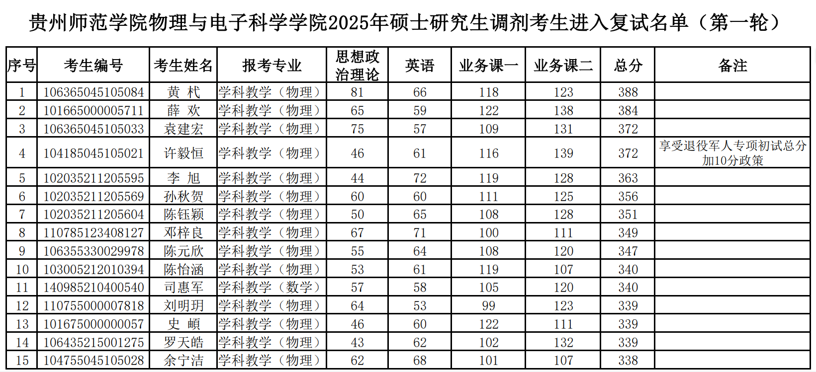 a片漫画 2025年硕士研究生调剂复试成绩(第1轮)