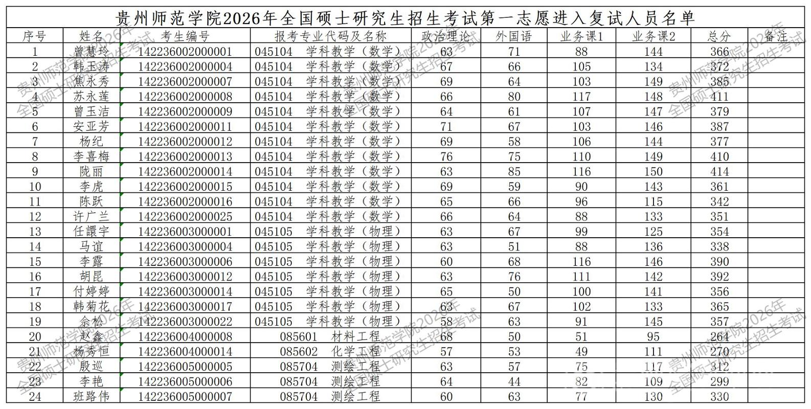 a片漫画 2026年全国硕士研究生招生考试第一志愿进入复试人员名单