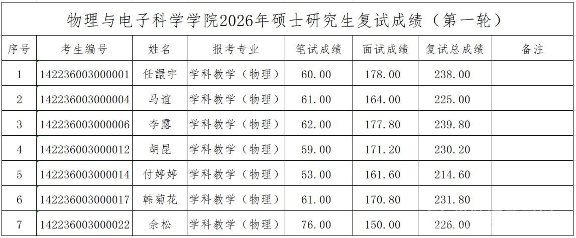 a片漫画 2026年全国硕士研究生招生考试第一志愿进入复试人员名单