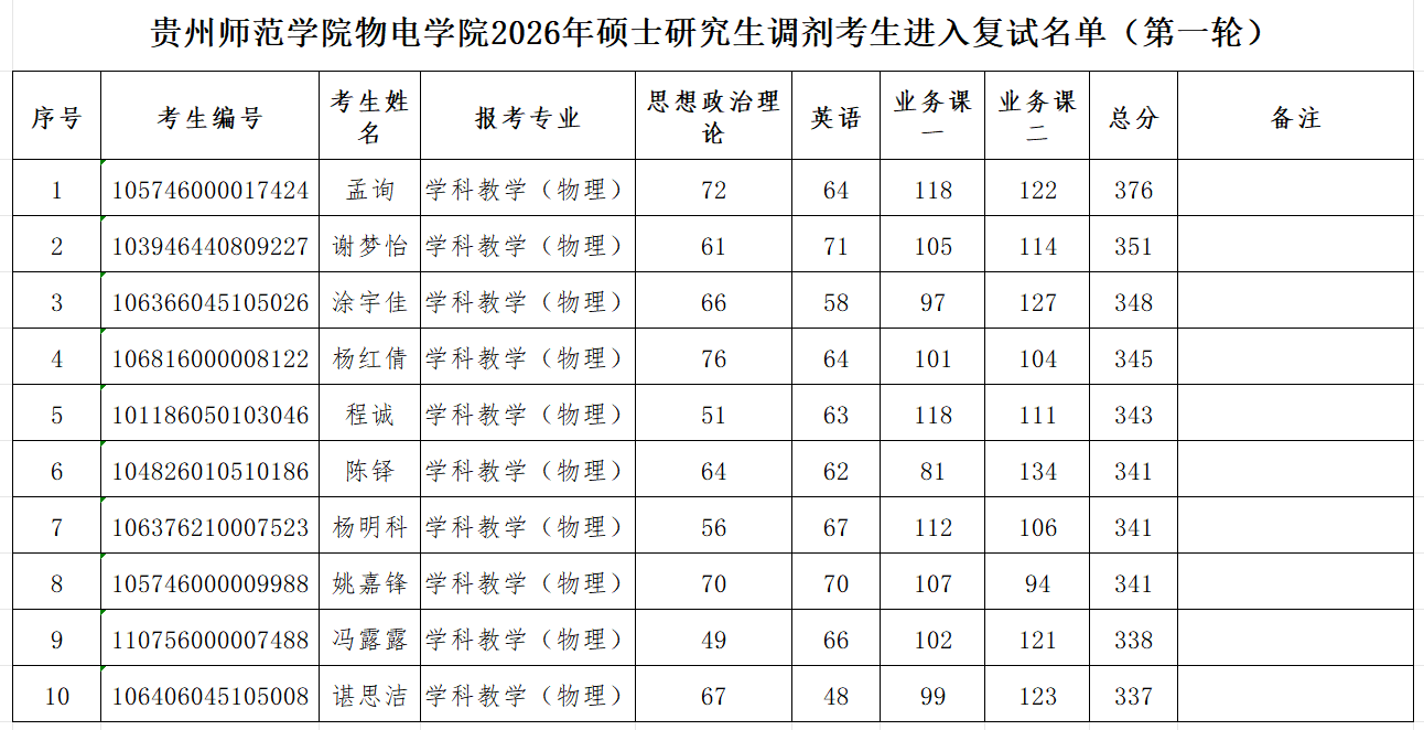a片漫画 2026年全国硕士研究生招生考试第一志愿进入复试人员名单