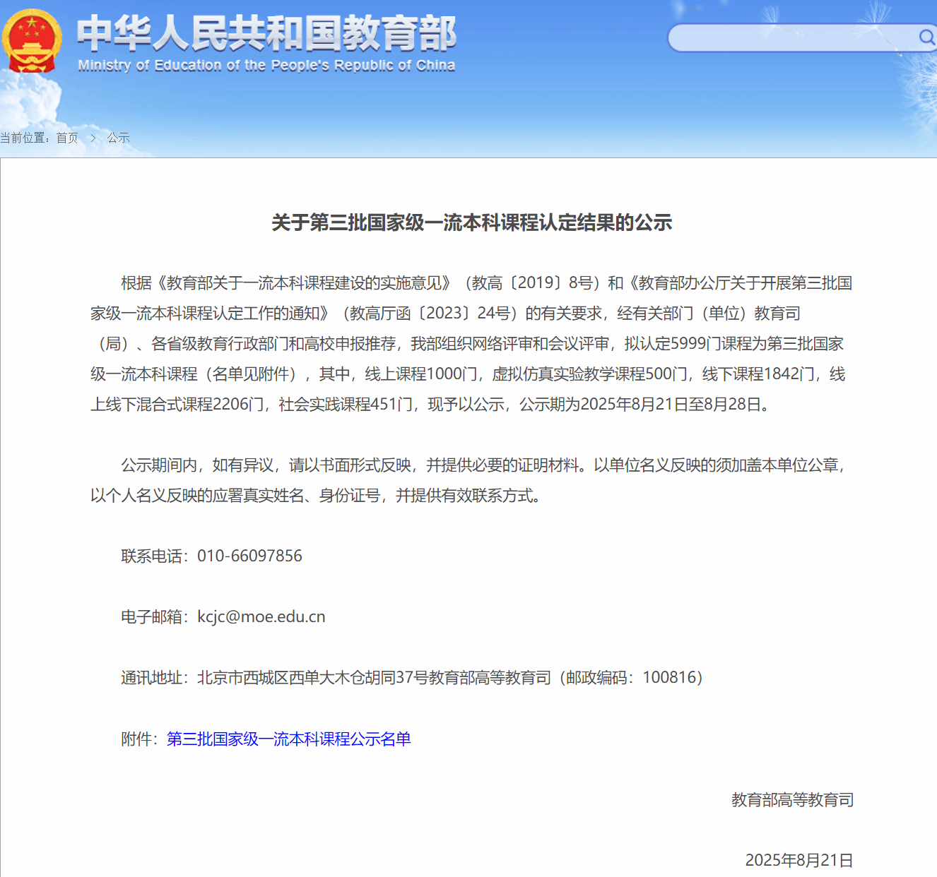 课程是教育最微观的问题,解决的却是教育最根本问题。此次国家级一流本科课程的认定,对我院而言是一次里程碑式的跨越——这不仅是学院在国家级课程建设领域实现的“零的突破”,更标志着其课程建设水平正式获得国家层面的权威认可,为学院教学发展写下浓墨重彩的一笔。